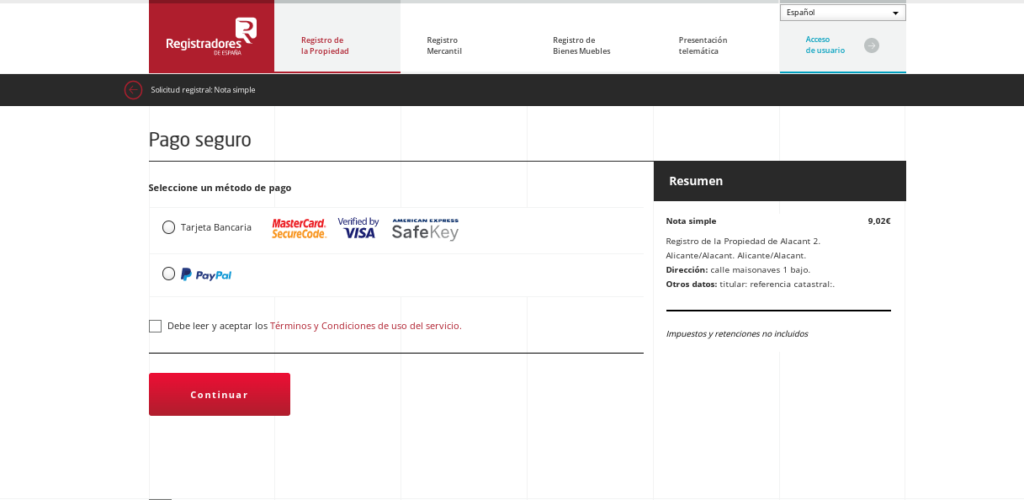 13-选择付款方式并且付款,一般在48个小时内会把Nota Simple 发到你登记的电子邮箱。