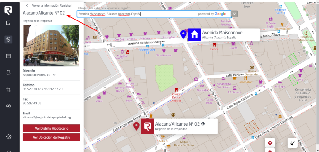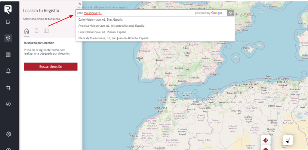 5- 在搜索中填写你想要的地址,会自动出来你想要的地址,只要选择正确的地址。比如这里选alicante 擦calle maisonave 1