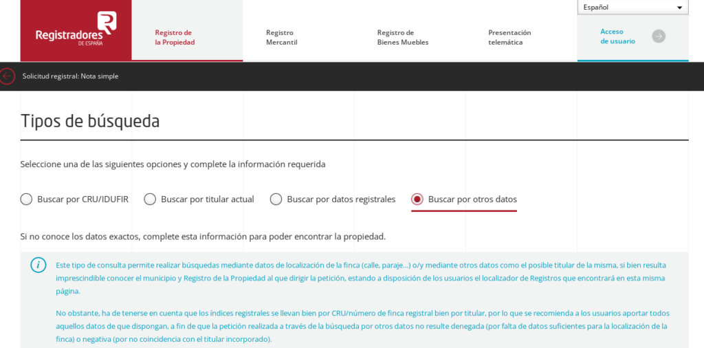10- 填写下面的表格,在registro空格里填写先前记住的号码,在 otro datos de localización 里填写现任房主姓名和referencia catastral 号码,点此连接找到referencia catastral 号码,此号码是为了方便工作人员更快的能在房屋登记处找到资料。最后点击 Buscar